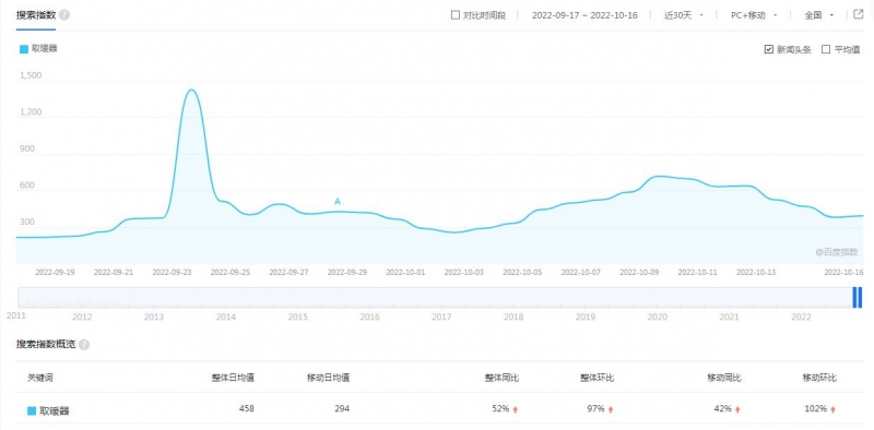 “取暖是人的馬斯洛需求中最底層的需求。國(guó)慶期間,一些地區(qū)氣溫變冷,給取暖產(chǎn)品市場(chǎng)帶來(lái)了一波小的高潮。”